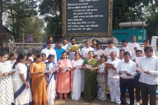 भारतीय संविधानाच्या उद्देशिकेचे झाले सामूहिक वाचन ठाणे :- येथील जिल्हाधिकारी कार्यालयात आज, दि.२६ नोव्हेंबर, २०२५ रोजी संविधान दिन उत्साहात साजरा करण्यात आला. जिल्हाधिकारी कार्यालयाच्या पहिल्या मजल्यावरील समिती सभागृहात डॉ. बाबासाहेब आंबेडकर यांच्या प्रतिमेस जिल्हाधिकारी डॉ.श्रीकृष्ण पांचाळ व इतर उपस्थित अधिकाऱ्यांनी पुष्पहार अर्पण करून भारतीय संविधानाच्या उद्देशिकेचे सामूहिक वाचन केले.यानिमित्त निवासी उपजिल्हाधिकारी डॉ.संदीप माने यांनी संविधान…