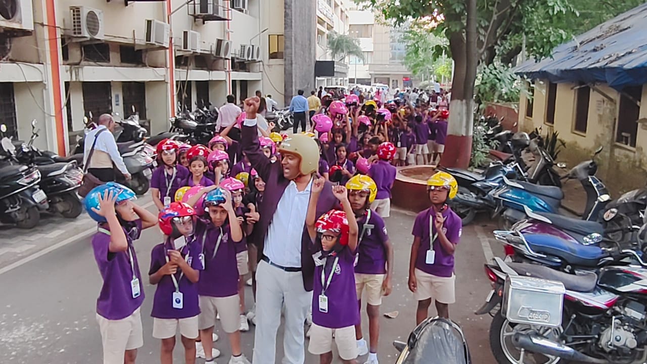 राघवेंद्र कुमार यांनी या उपक्रमाचा उगम कसा झाला, तसेच हेल्मेट वापराचा प्रसार करण्यामागील अनुभव सांगितला. ते म्हणाले, “लहानपणापासून मुलांना हेल्मेटची सवय लावली, तर ते मोठे झाल्यावर कोणतेही वाहन कधीच विनाहेल्मेट चालवणार नाहीत. त्यामुळे भविष्यातील अपघाती मृत्यूचे प्रमाण निश्चितच कमी होईल.”