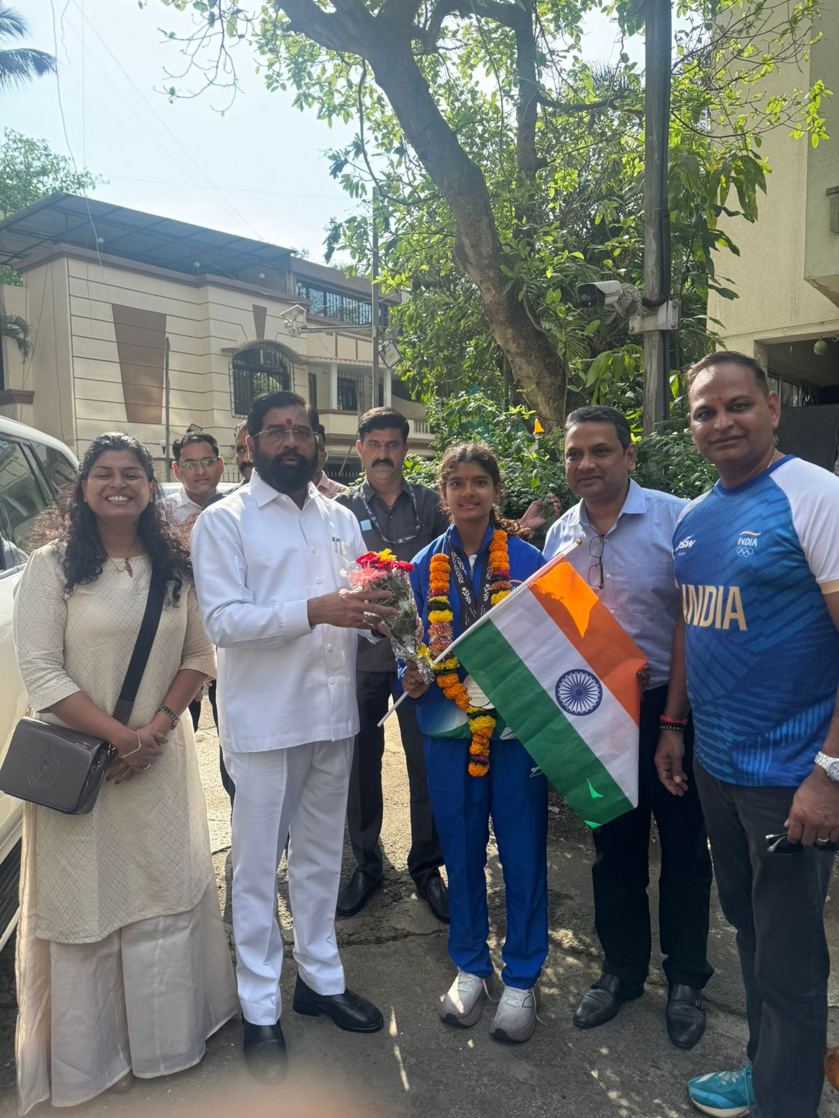 ठाणे :-बहरीन इथे पार पडलेल्या आशियाई युवा क्रीडा स्पर्धे मध्ये 100 मिटर हर्डल्स स्पर्धेत रौप्य पदक कुमारी शौर्या अंबुरे हिने पटकवल्या नंतर आज ठाण्यात तिचे उत्साहात स्वागत करण्यात आले, महाराष्ट्राचे उपमुख्यमंत्री एकनाथजी शिंदे यांच्या हस्ते तिचा सत्कार करण्यात आला, या वेळी एकनाथजी शिंदे यांनी शौर्या अविनाश अंबुरे हिचे विशेष कौतुक केले.