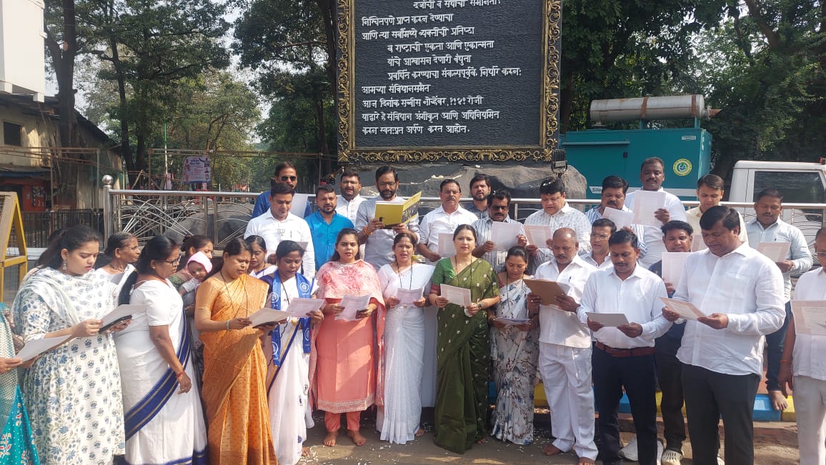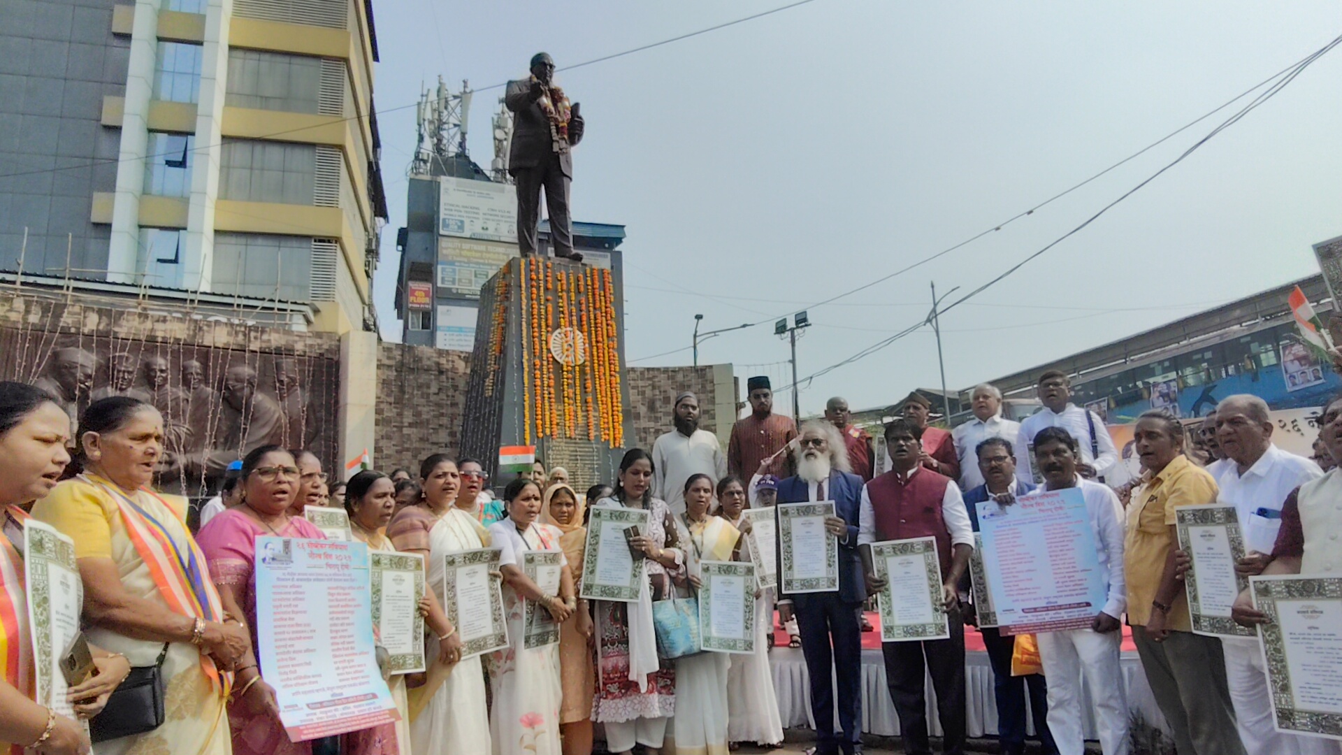 आमदार संजय केळकर यांनी आज संविधान दिनानिमित्त कोर्टनाका येथील संविधानकार महामानव डॉ. बाबासाहेब आंबेडकर यांच्या पूर्ण कृती पुतळ्याला पुष्पहार अर्पण करून वंदन केले. तसेच कोर्टनाका सर्कल येथील ज्ञानज्योती सावित्रीमाई फुले आणि महात्मा ज्योतिराव फुले यांच्या पुतळ्याला अभिवादन करून संविधान चौकात संविधान प्रास्ताविक वाचन केले. विशाल वाघ यांनी संविधान वाचन कार्यक्रमाचे आयोजन केले होते.